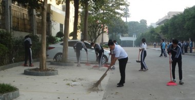 党员模范树新风 2018年5月14日晨,起床铃声还没有吹响,中德大道上已出现了多位党员、老师、团员、学生的身影,他们人手一把大扫帚,在义务打扫卫生、美化中德校园。 党员教师带非党员教师 党员带动团员 党员、领导带到学校 晨曦...